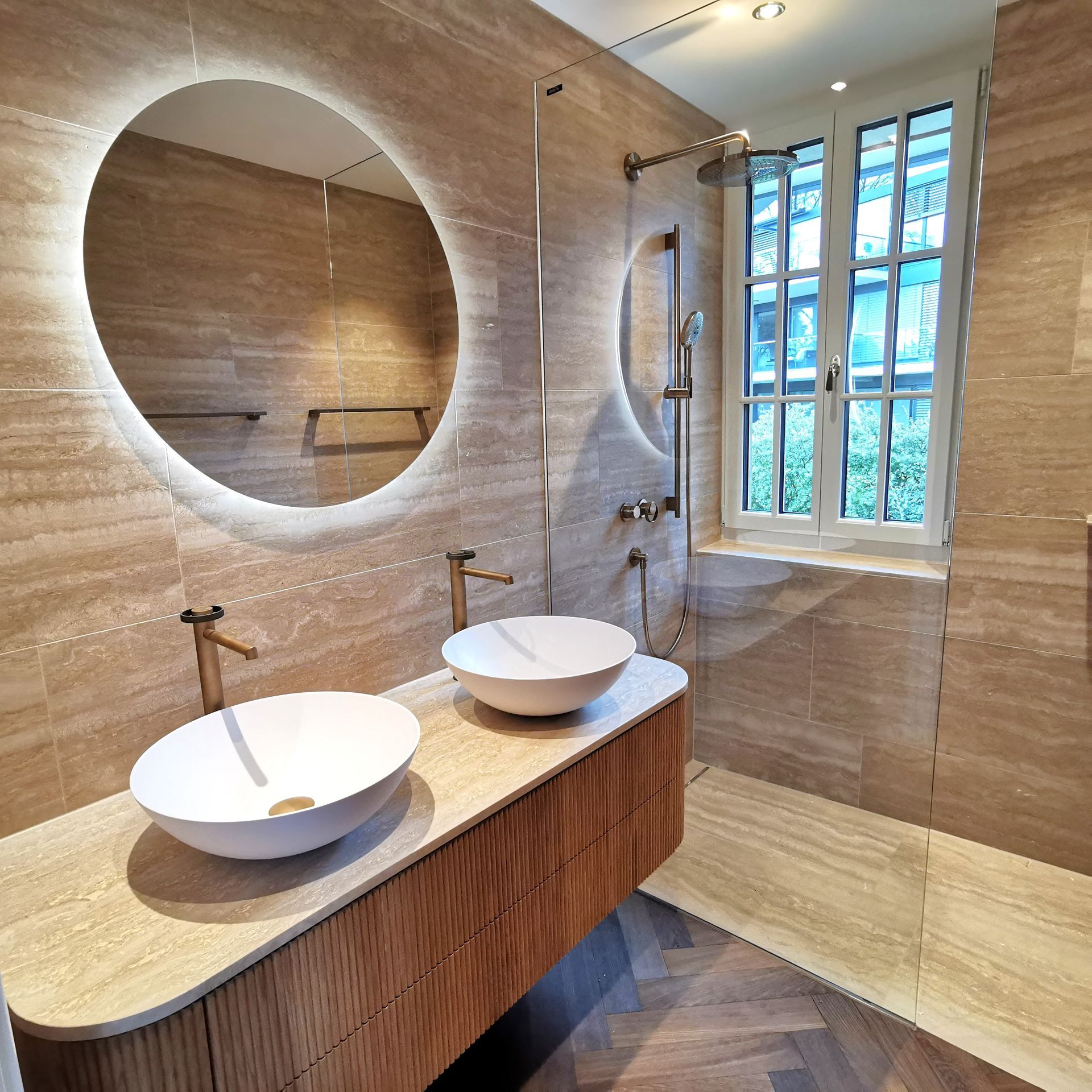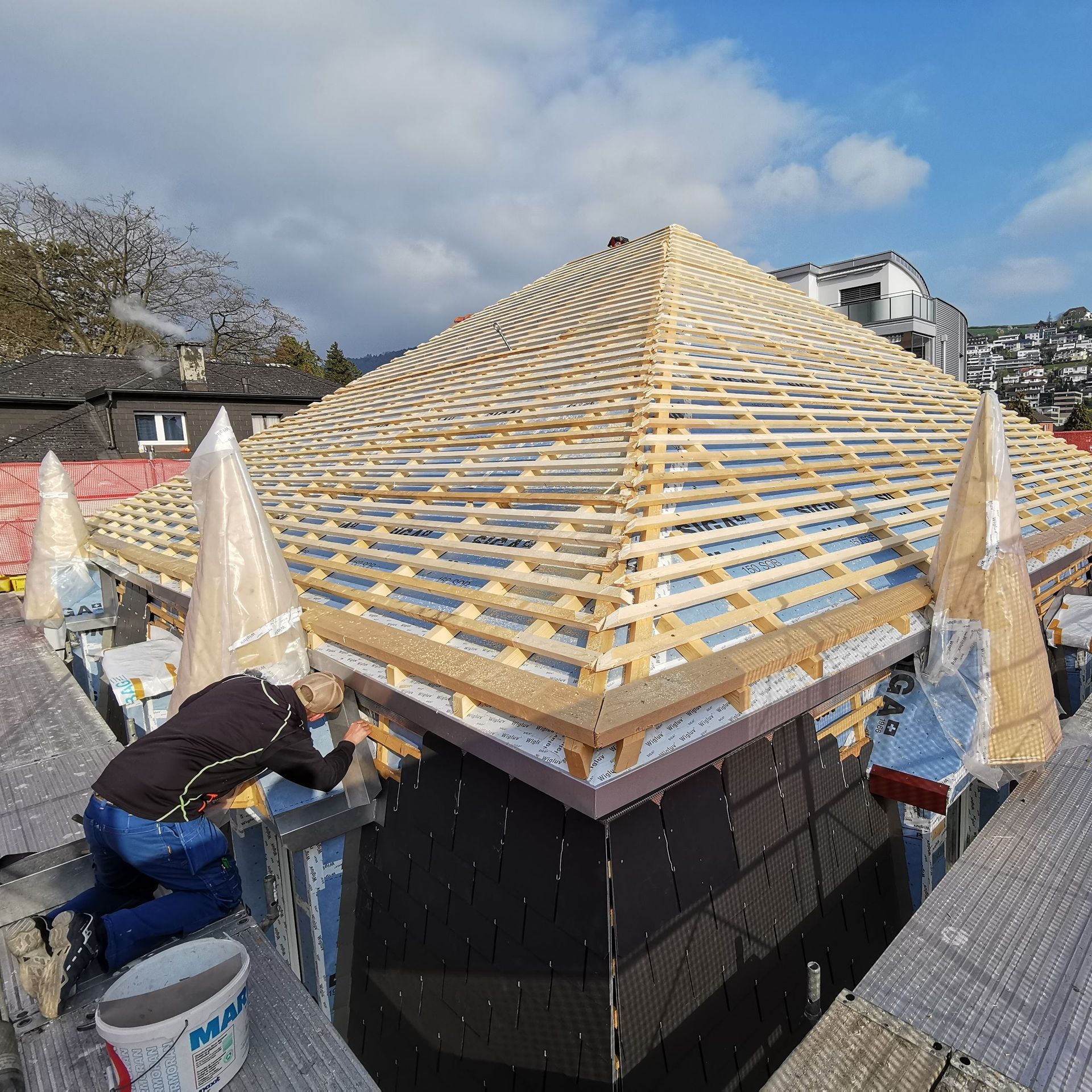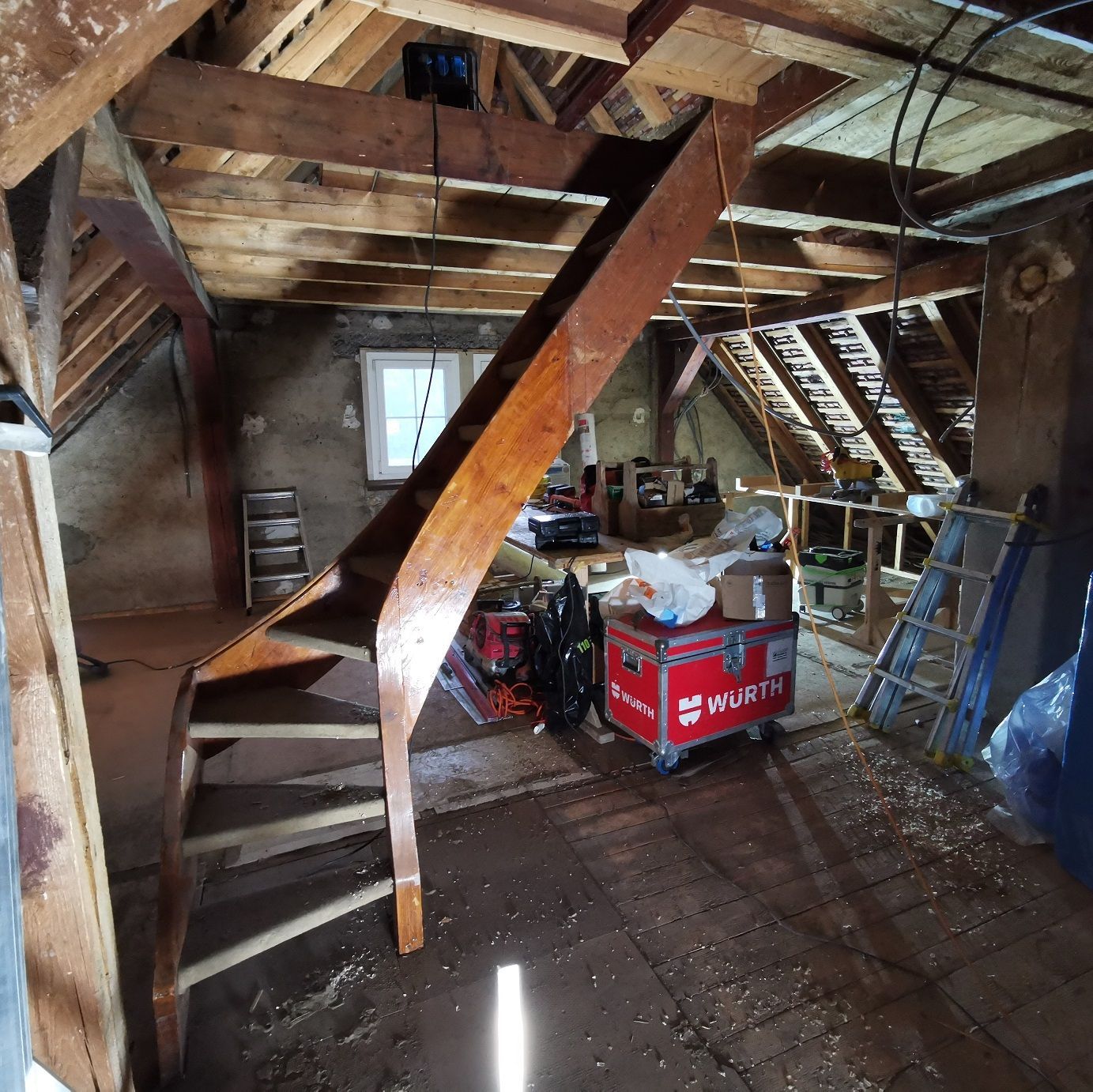 Erfüllte Wohnträume in der Stadt Luzern, durch eine Totalsanierung und Umbaus eines lieblichen Zeitzeugen der 30 Jahre. Das vormals kaum beheizte Reihenhaus wurde im Innern über sämtliche Arbeitsgattungen aufgewertet. Wo möglich, wurde der alten Bausubstanz mit viel Liebe und Rücksicht begegnet. So konnten alte Klinker- und Parkettböden wieder hervorgeholt und restauriert werden, das Dachgebälke sichtbar und in der Nutzung umfunktioniert werden. Die zeitgemässen und modernen Aspekte kommen mit den komfortablen Bädern und Küche nicht zu kurz. Die Sanitär-, Heizungs- und Elektro-Komponenten sind von Grund auf neu.