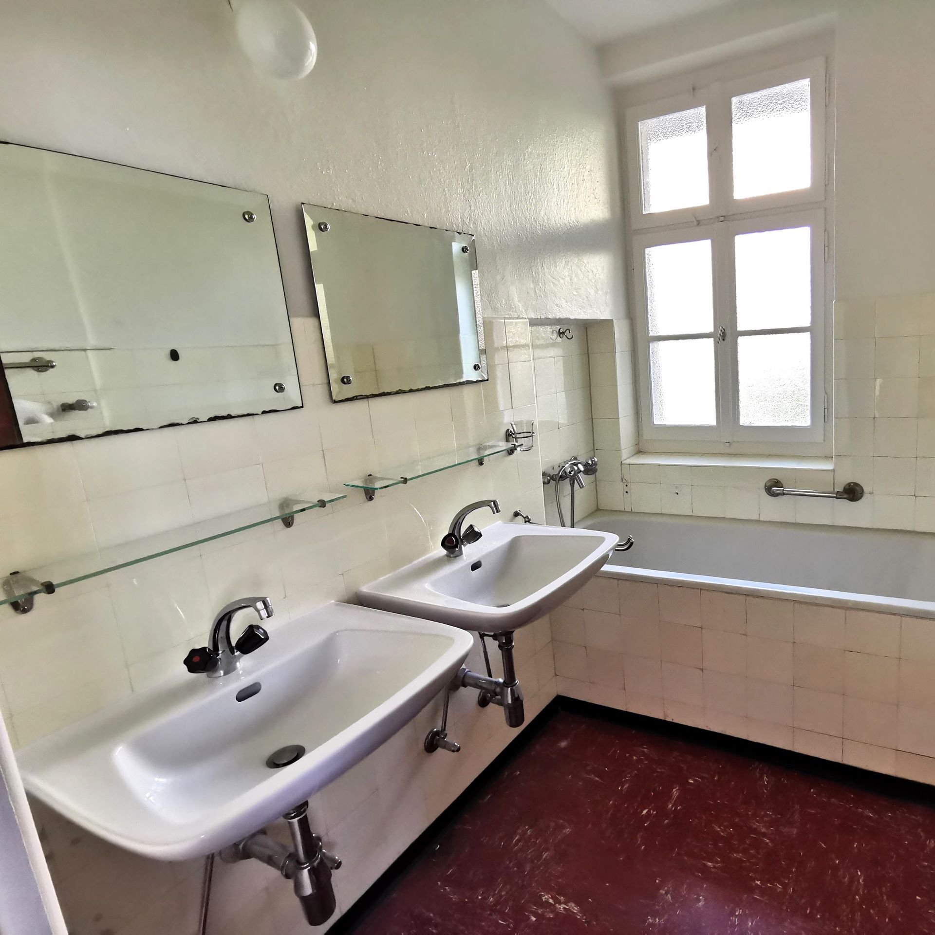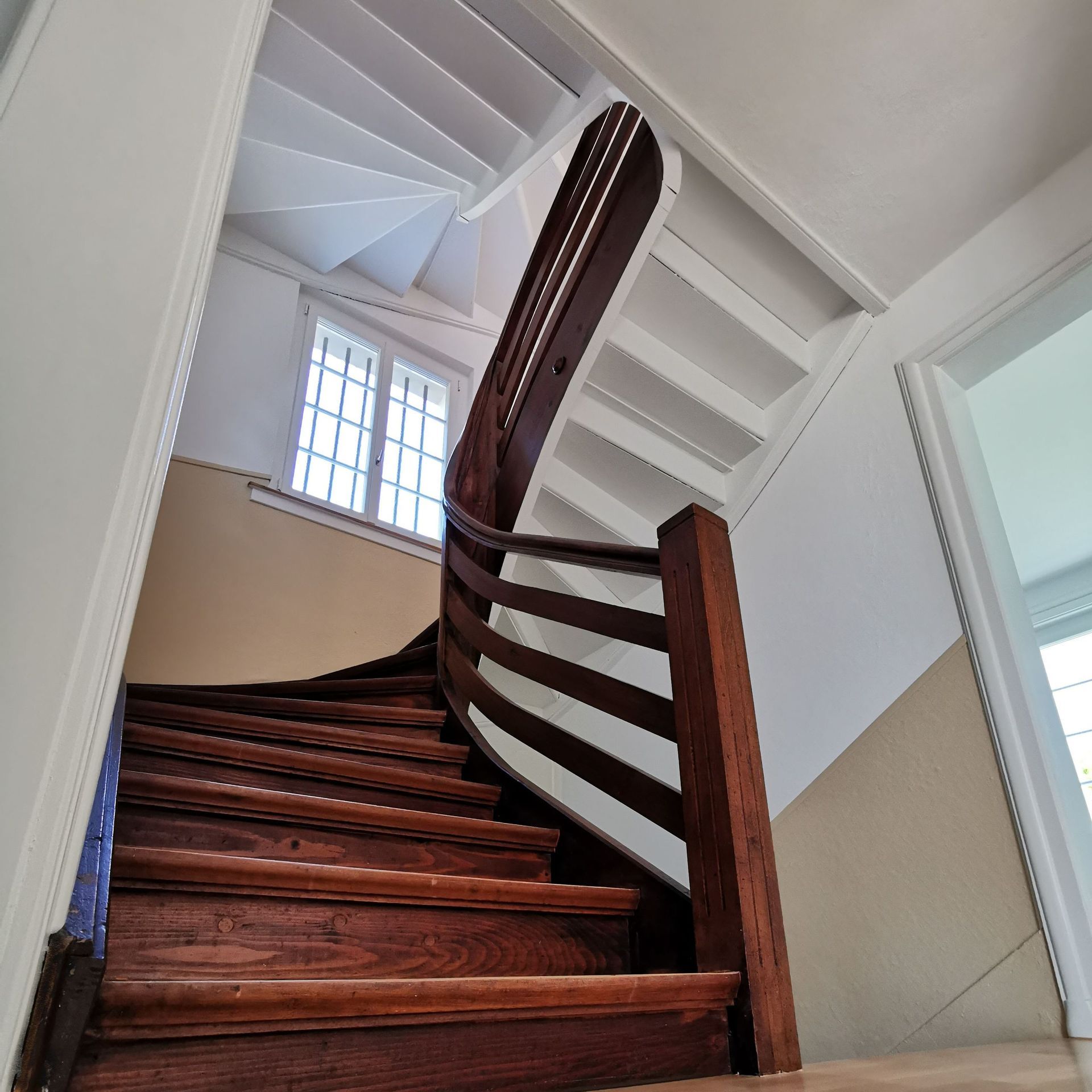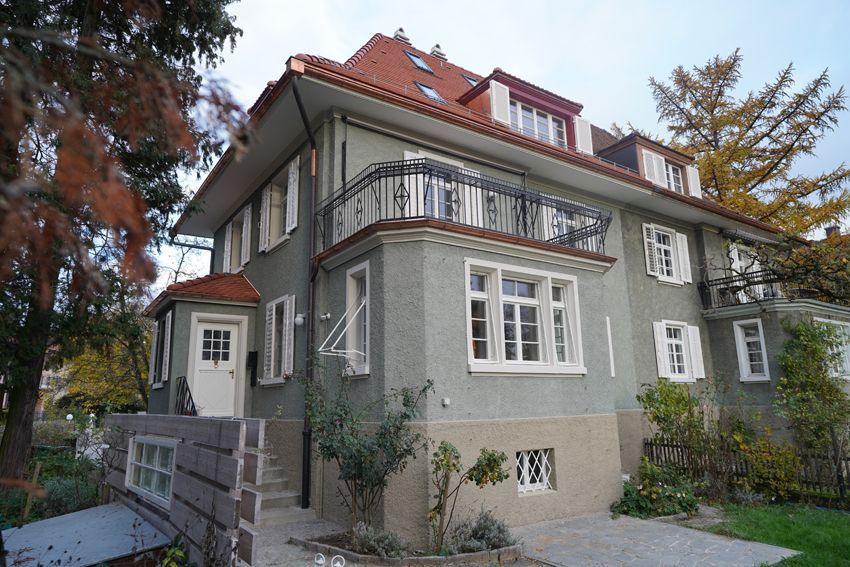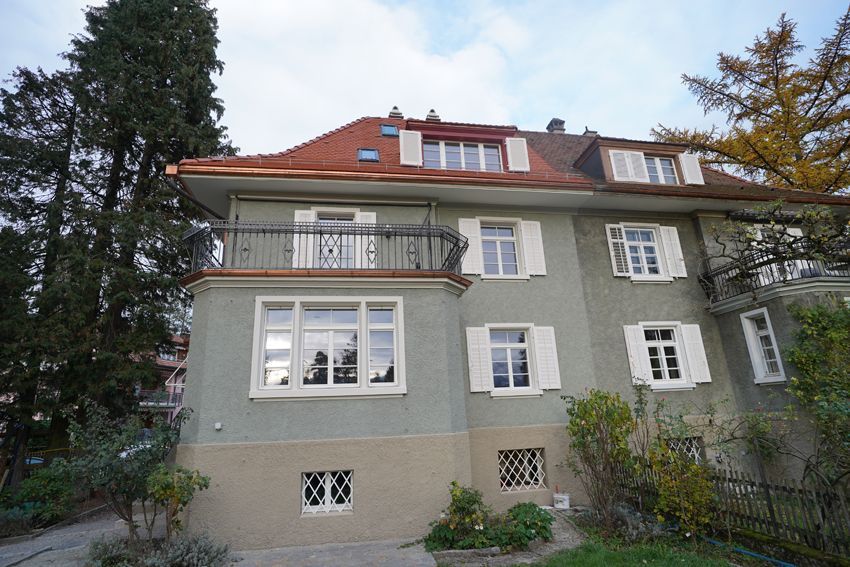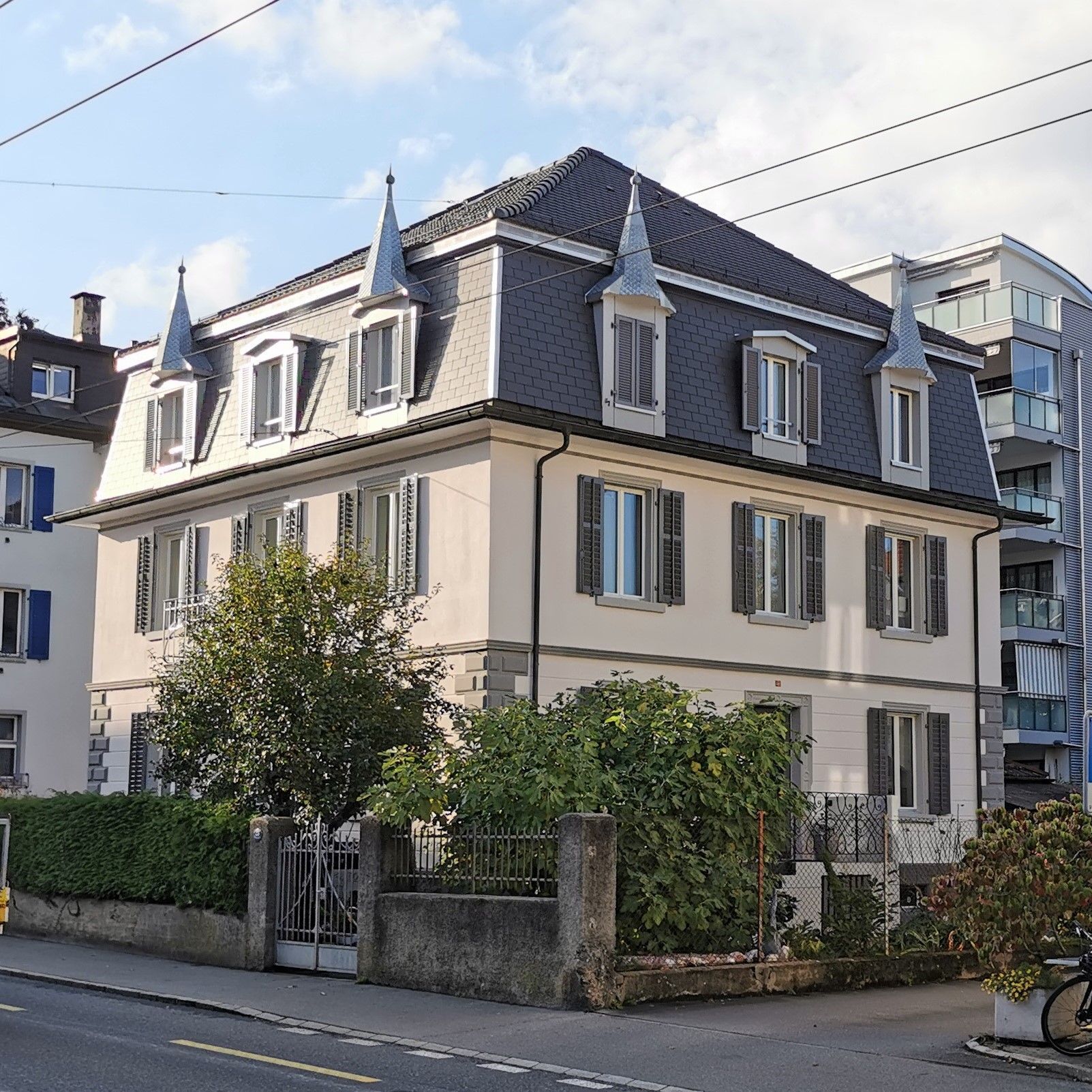Mit seinen Dachtürmen, den markanten Quadersteinen, Gesimsen und Gewänden, zeugt die totalsanierte Fassade und der Mansardendachstuhl an prominenter Lage von Zeitgeschichte. Dem erhaltenswerten 100 jährigen Objekt, wurden durch Umstrukturierungen, moderne Küchen und Bäder eingepasst. Das MFH wird auf einem Geschoss als Wohngemeinschaft, auf einem Weitern als Airbnb, und das grosszügig umgebaute EG durch die Eigentümerin genutzt. Konsequenter Weise wurden sämtliche Installationen erneuert und das MFH mit grossem Aufwand den heutigen Brandschutzanforderungen angepasst.