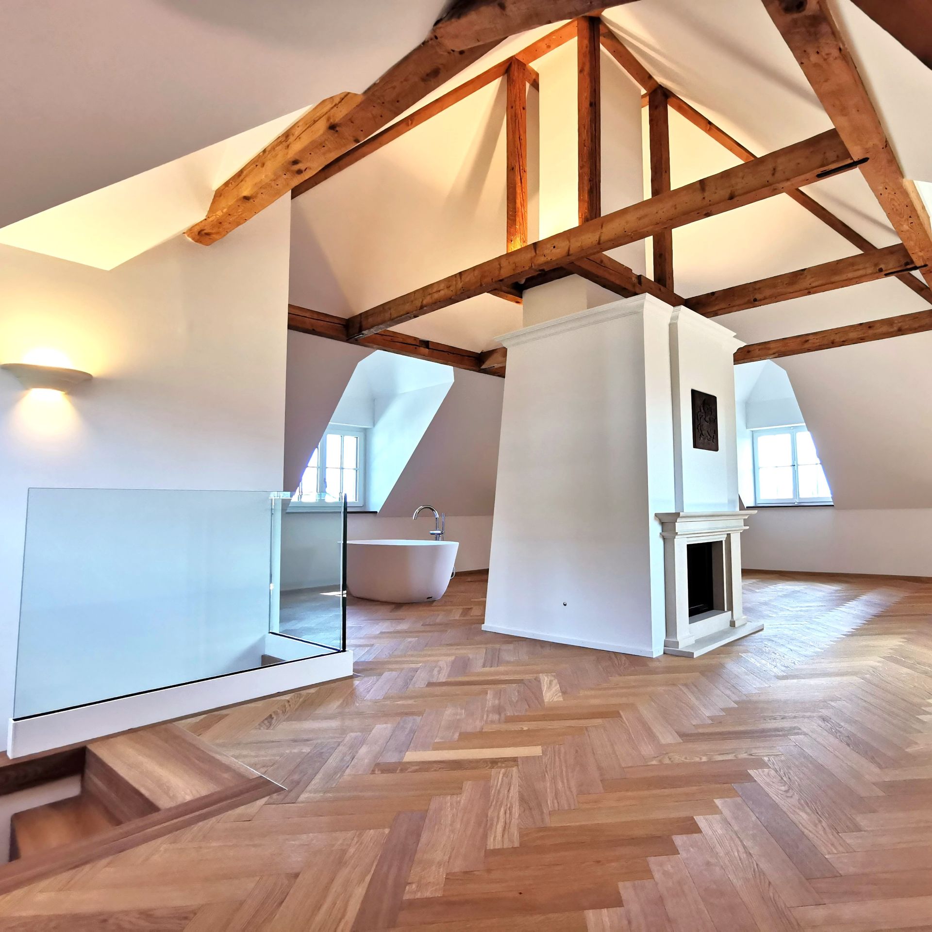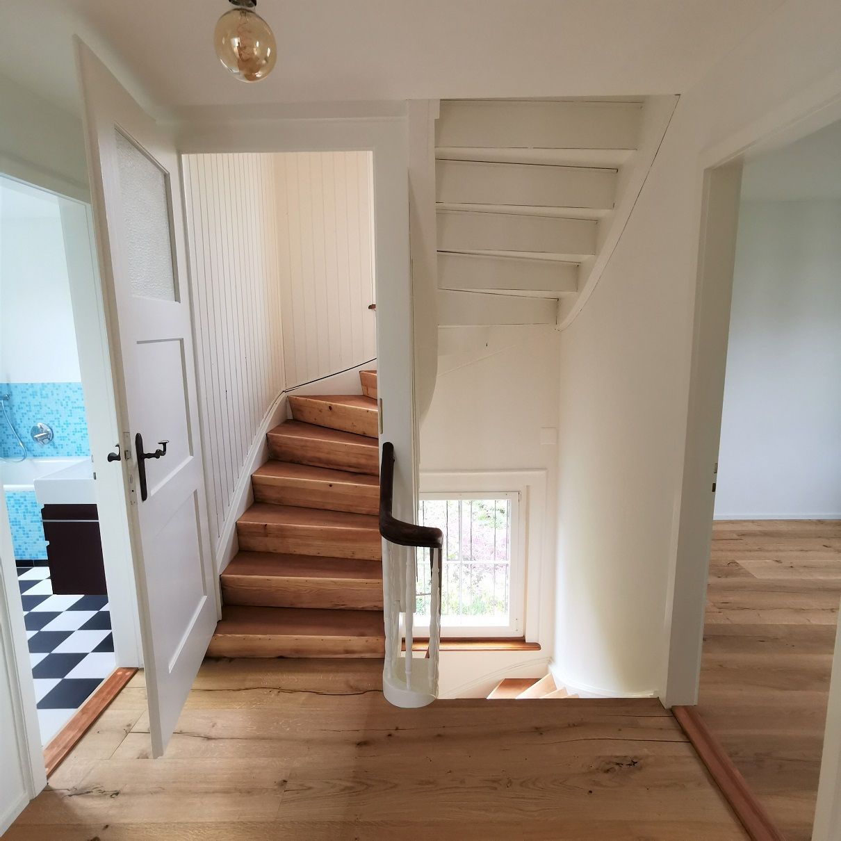 Der vormals düstere Dachstock blüht nun als einladendes Schmuckstück mit Liegebühne auf. Nebst spannender Küchen- und Bäder-Materialisierung wird das Objekt neu mittels Erdsonde beheizt. Der Charme des Hauses wurde aufrechterhalten, und die Einliegerwohnung lichtdurchfluteter und moderner gestaltet.