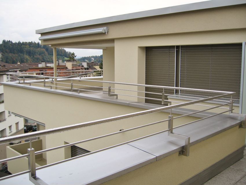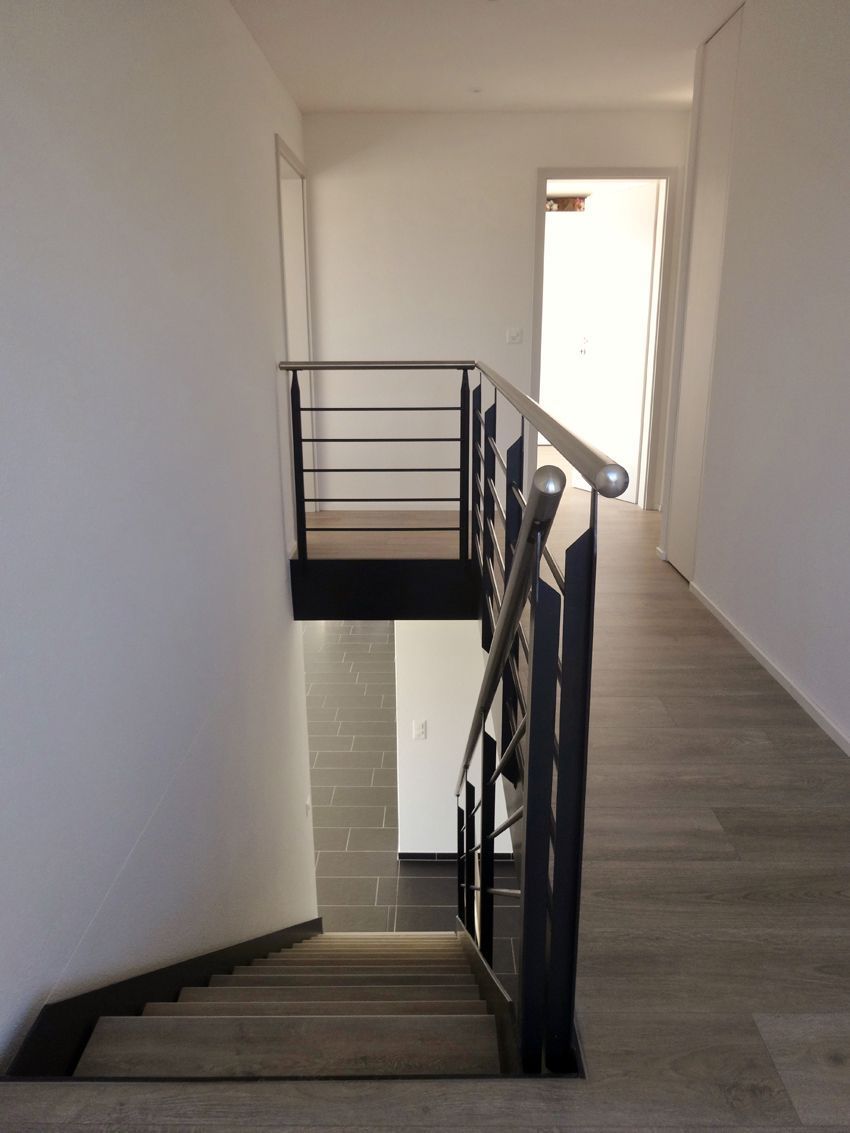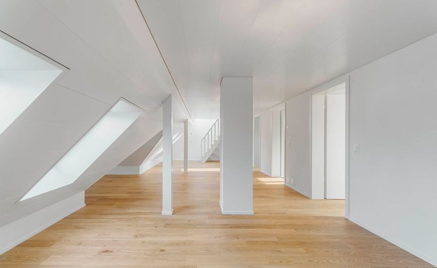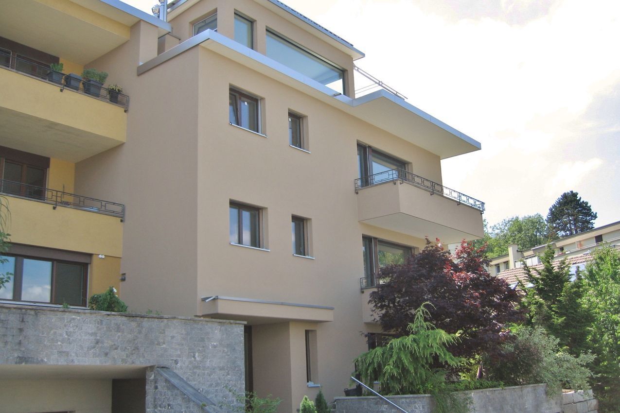 Dank der Umnutzung des Bürogeschosses in Wohnfläche entstand ein Dreifamilienhaus. Das vormals nicht begehbare Kiesdach wurde der obersten Wohnung als Terrasse zugeteilt. Eine raffiniert eingepasste Treppe führt aus der Wohnung in den aufgesetzten Wintergarten aus Holz und auf die herrliche Terrasse. Das Haus aus den 70er-Jahren wurde installationsmässig komplett saniert, inklusive Bodenheizung. Zusätzliche Nassräume wurden geschaffen und eine Voltaikanlage realisiert. Den wärmetechnischen Aspekten wurde man mit dem Fensterersatz und der Aussendämmung gerecht.
