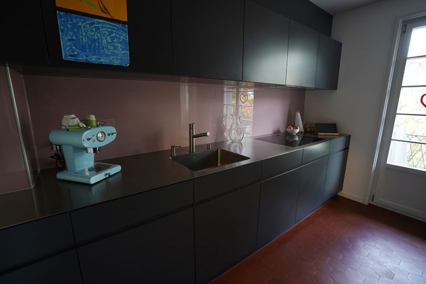 Das charmante Reihenhaus aus den 30er-Jahren wurde mit individuellem Ausbau totalsaniert. Das Nutzungsprogramm der fünfköpfigen Familie ist vielfältig – vom Schlagzeugkeller bis zur elterlichen Dachstocknutzung mit Bad, Büro und gemütlichen Schlafzimmer im vormaligen Estrich. Speziell mit viel Liebe wurden die alten Parkett- und Plattenarbeiten restauriert oder stilgerecht erneuert. Dagegen setzt die geradlinige, moderne Küche als Treffpunkt im Erdgeschoss ein gelungenes Gegengewicht.